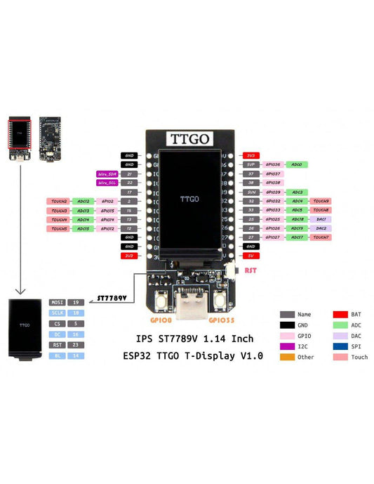 Unsoldered TTGO T-Display ESP32 WiFi Bluetooth Module 1.14 Inch LCD Control Board 4MB CP2104 Chip