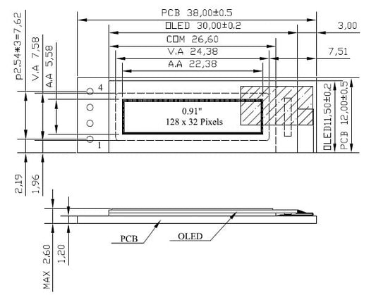 0.91 inch 128x32 IIC Oled LCD Blue LED Display Modules