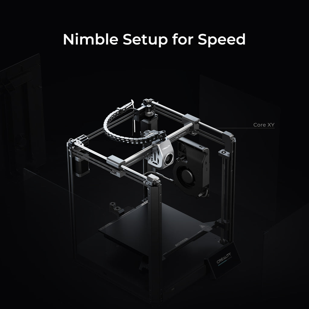Those are just not the end of this high-speed supremacy because they are also installed with a Dual-Gear Direct Drive Extruder delivering strong extrusion force. On top of that, this extruder mingles well with its new ceramic heater, encircling the entire hot end that helps the filament to melt quickly. The hot end is heated up to 200°C within 40 seconds to achieve high-quality prints even at the level of its high printing speed. Dual fans are provided for the model cooling to avoid stringing and warping. One in the print head and an 18w auxiliary fan in the build chamber.