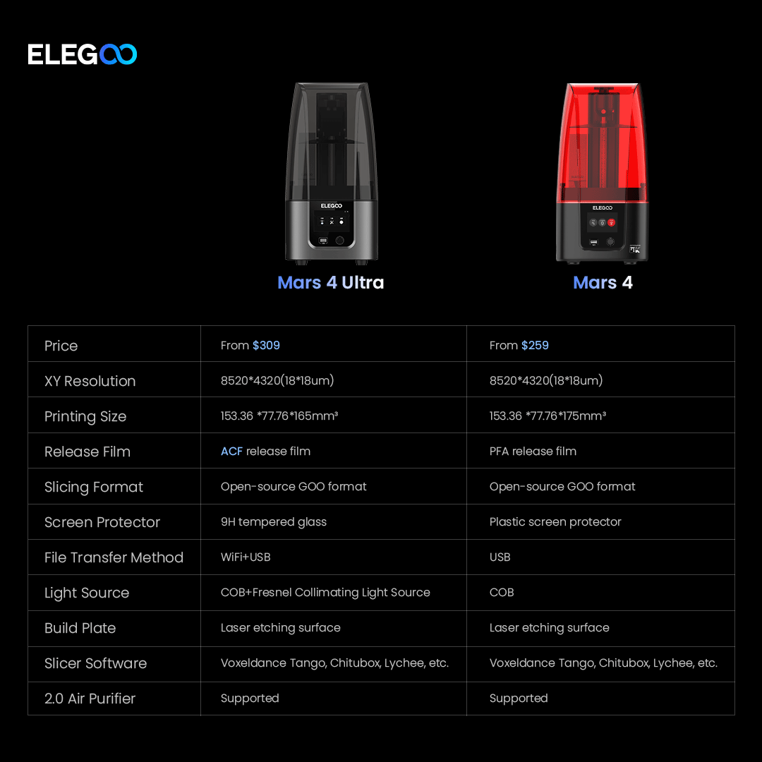 - up to 150mm/h with ACF release liner film and ELEGOO rapid standard resin
